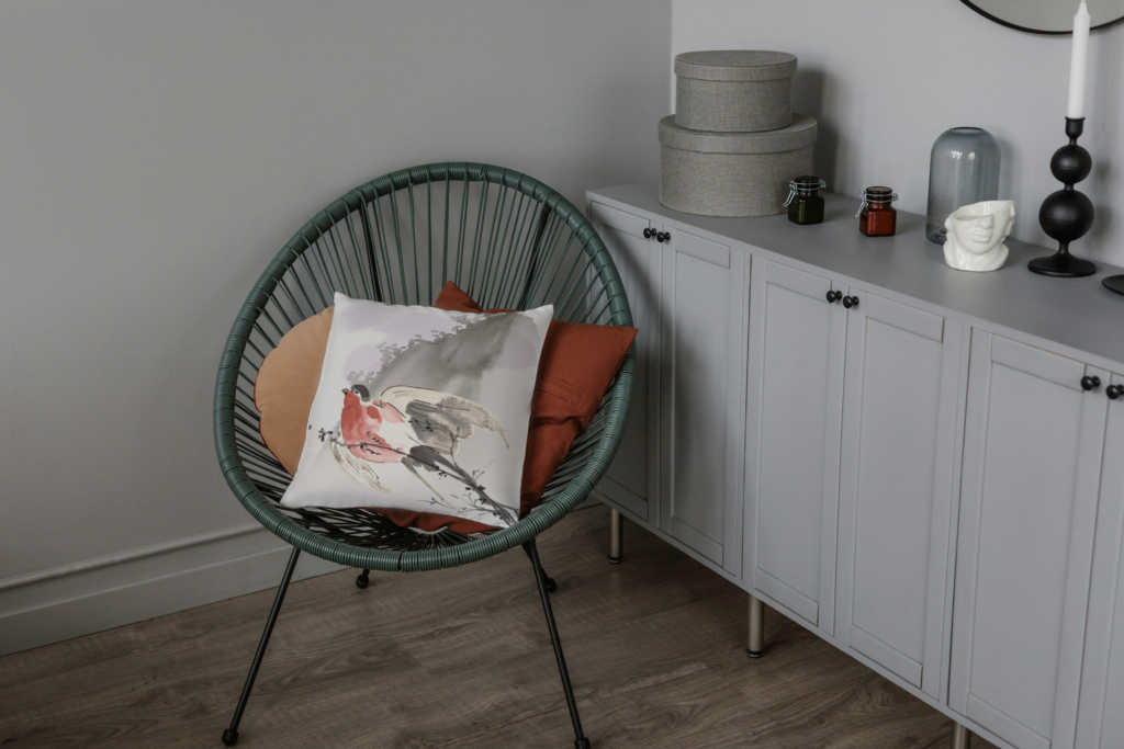 A terracotta throw pillow on a neutral sofa works beautifully, or a larger terracotta-toned canvas as a focal point above a low console. If you have a reading corner, a rust-colored cushion on your reading chair creates a defined, purposeful space.